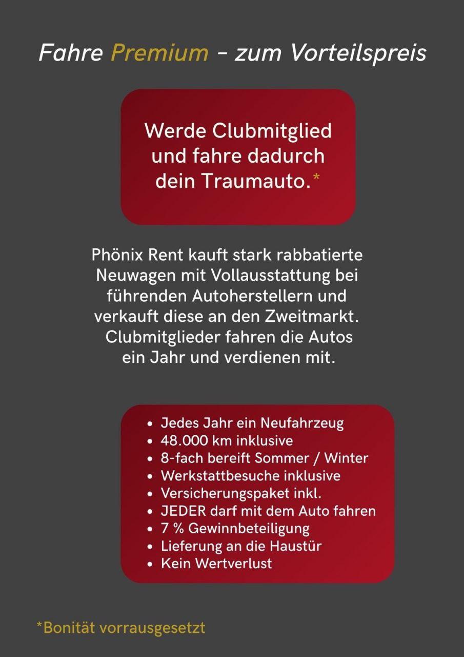 Das finanzielle Risiko liegt bei Phoenix-Rent. Du nutzt das Fahrzeug - Phoenix-Rent trägt die Verantwortung.